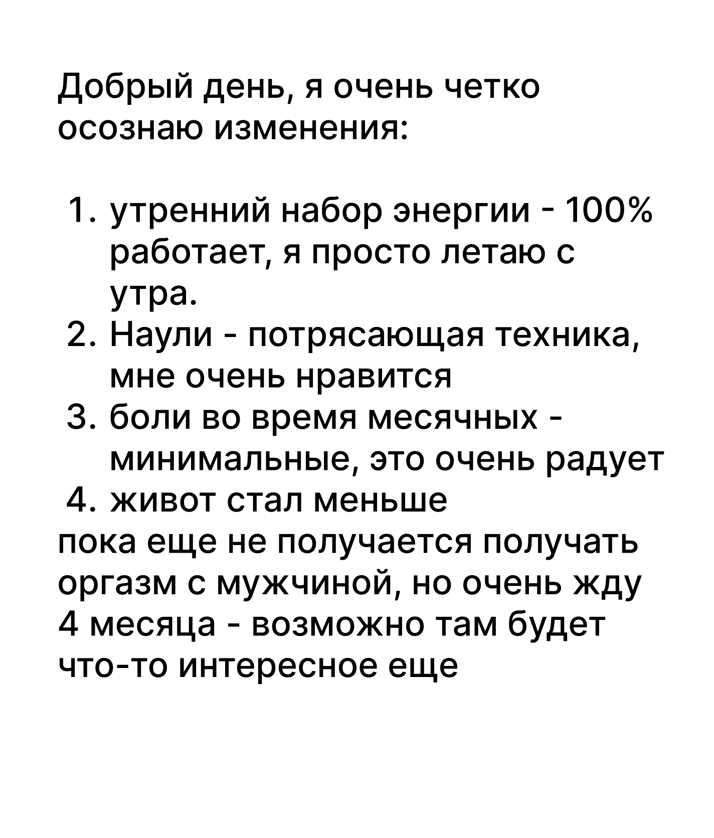 Результат: получите пошаговый алгоритм для восстановления женского здоровья и узнаете, как вновь получать оргазмы
